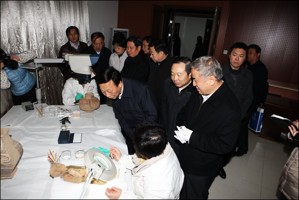 12月4日,陕西省委副书记孙清云在省委副秘书长杨志刚,省委教育工委书记、省教育厅厅长杨希文,省委组织部副部长冯力军,省委宣传部副部长刘伟等的陪同下到我校进行调研和指导工作,调研的主题是党的十八大精神的学习贯彻和高校党建工作。 在我校党政领导甘晖、王涛、司晓宏,党委常委、组织部部长任应坤,党委常委、学校办公室主任卢胜利,校长助理杨祖培、韦广雄及学校相关职能部门负责人等的陪同下,孙清云一行来到长安校区文澜楼前,观看了以“高举团旗跟党走,勤学苦练砺才干”为主题的大学生思想政治教育品牌活动展示。孙清云仔细听取了我校以马列理论读书社为龙头开展大学生理论学习的相关情况,详细了解了我校大学生骨干的培养机制和暑期社会实践的项目化运作模式,充分肯定了我校的研究生扶贫接力计划和青年志愿者“知识援助”行动,认真听取了我校开展大学生心理健康教育的情况和心理健康教育基地建设情况。 参观过程中,孙清云肯定了我校大学生党建工作成绩,强调了大学生思想政治教育的重要性。他勉励在场同学要认真学习党的十八大报告精神,他说,十八大报告提出的相关理论是中国特色社会主义理论的最新成果,中国特色社会主义理论是将马克思主义的基本原理同现代中国的具体实际和时代特征相结合的产物。同时,他激励在场同学要将理论学习与实践锻炼相结合,在实践中学习理论、运用理论、提升理论。孙清云一行还察看了我校大学生理论学习的总结报告、学生调研报告、社会实践论文集等。 在我校马克思主义学院,孙清云一行参观了学院发展图片展和文化墙,对该院建院60年来在人才培养、科学研究和社会服务取得的突出成绩给予充分肯定,并与该院研究马克思主义理论的专家学者和青年大学生进行了愉快交流。 孙清云一行来到致知楼,考察设在我校的陕西历史文化遗产保护教育部工程研究中心,在全国著名档案保护专家、陕西历史文化遗产保护教育部工程研究中心主任李玉虎教授陪同下,参观了文物修复的操作现场,仔细询问了国家级文物的修复还原步骤,在获得国家多项专利的“褪色档案字迹的恢复与保护”展示前,孙清云仔细查看了修复后的一大批延安时期留下的珍贵档案。他高度肯定了李玉虎教授的科研和文物修复工作的成果,鼓励李玉虎教授继续深入科学研究工作,为国家的文化遗产保护做出更大的贡献。 在调研交谈中,甘晖书记向孙清云简要汇报了我校学习宣传贯彻十八大精神和学校党建工作情况,并对孙清云一行来校调研和指导工作表示感谢。
