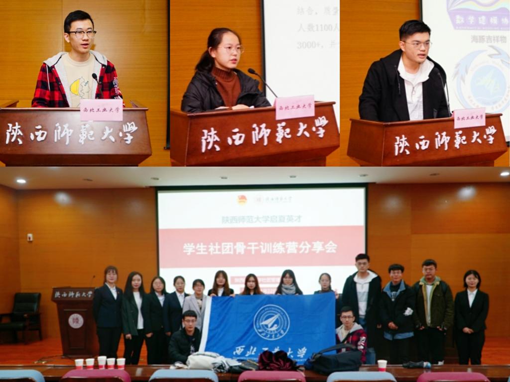 报告结束后,举行了学生社团经验分享交流会。西北政法大学红十字志愿者协会、法律服务中心,西北工业大学学生软件协会、学生数学建模协会的代表分别围绕社团章程、组织机构、社团活动、思政建设等方面进行分享,为我校社团代表提供了了解外校社团情况的平台,增进了彼此的交流,有利于我校社团学习经验,更好的促进社团发展建设。