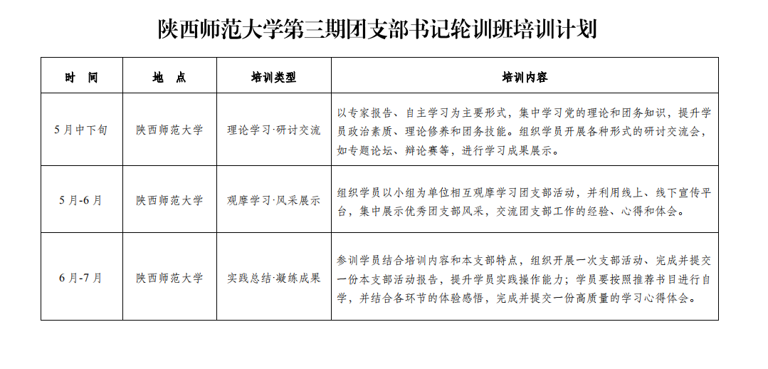 陕西师范大学第十一期大学生骨干培训班培训计划