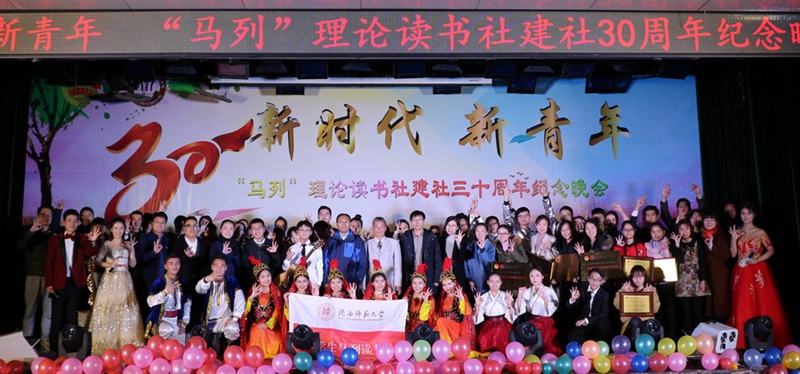 12月25日晚,我校大学生“马列”理论读书社建社30周年纪念晚会在雁塔校区积学堂成功举行。共青团陕西省委学校部部长潘磊,校党委副书记、纪委书记马博虎,党委组织部、党委学工部(学生处)、党委统战部、研工部、宣传部、后勤第一集团、校团委等职能部门负责人,各学院主管学生工作的处级干部、团委(总支)书记,读书社优秀社员代表、受表彰的优秀集体代表等共同参加了晚会。