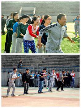 运动会伊始,国旗护卫队以及由全院教师和学生组成的13个方队依次入场,参赛队伍服装整齐,英姿飒爽,响亮的口号声喊出了他们必胜的决心与信心,同时同学们根据各自学科和专业的特色设计了独特的口号和展示方式。与往年相比,今年趣味运动会的一大特色是比赛项目更加多样,紧紧围绕“欢乐政经人”与“团体协作”的主题,“呼啦圈过山车”“奔跑一家人”“火车快开”“跳跳绳”四个新颖独特的项目令人耳目一新,同学们对此充满了期待,个个摩拳擦掌跃跃欲试,现场气氛无比热烈。比赛中,裁判员、志愿者、播音员等工作人员各司其职、坚守岗位,运动员积极参赛、奋勇争先,整场比赛得以顺利进行。最后,2013级法学班荣获一等奖,2013级思想政治教育二班、行政管理班荣获二等奖,2013级社会学班、2015级研究生第二方阵和2013级思想政治教育创新实验班荣获三等奖。