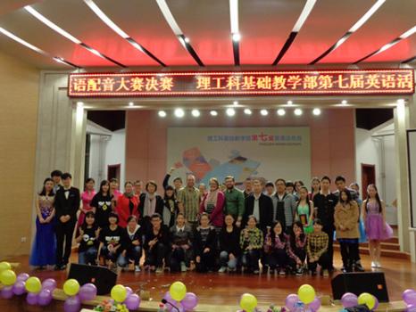 2015年4月6日晚7点,理工科基础教学部第七届英语活动月开幕式暨英语配音大赛决赛于雁塔校区逸夫楼音乐厅隆重举行。出席本次大赛的领导嘉宾有:校团委副书记戴璐,理科部主任、党总支书记吴保卫,理科部主管学生工作的副处级干部肖新军,以及理科部各辅导员。担任本次大赛的评委是来自我校外国语学院的外籍教师Andrew Sweatman、Allison Sweatman、Michael Keller以及Jennifer和李若子老师。