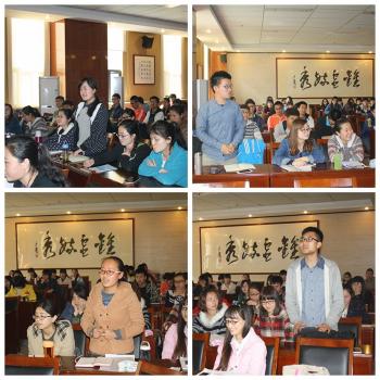 报告会上,李夏冰博士分别从确立志向、艰苦求学、乐享奋斗三个方面讲述了其在英国求学深造的艰辛与快乐。她用一个个发生在自己身上的生动故事让同学们领悟到,在选择人生的努力方向时,只要确定了最能使自身品格和长处得到充分发挥的目标,并且锲而不舍地走下去,终会获得成功。李夏冰博士结合英国高校的奖学金制度,重点介绍了英国大学的学习方式和科研习惯等,她颇有感触地谈到,通过出国留学的历练,自己的专业知识及科研能力不但得到了一定程度的提高,而且培养了积极乐观的心态和全面分析问题、处理问题的能力。李夏冰鼓励同学们加强专业学习,多了解化学领域的前沿发展,不断拓展专业选择视野,及早确立考研志向;考研期间要学会调节心理压力,要劳逸结合,要学会坚持。互动环节中,同学们踊跃提问,李夏冰博士耐心地解答了同学们在出国留学和考研深造方面的困惑和问题,让同学们颇受启发。