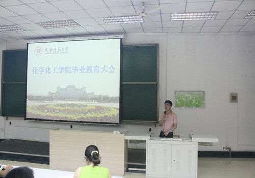 为确保2014届毕业生各项教育工作顺利进行,6月3日晚7点,化学化工学院在文渊楼101教室召开了学院2014届毕业生教育大会。化学化工学院分党委副书记王启明老师、毕业班辅导员牟朝丽老师参加了会议。大会由牟朝丽老师主持。