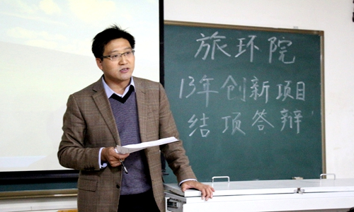 2014年10月15日下午,旅游与环境学院2013年大学生创新性实验项目结项答辩会在文渊楼515教室举行。我院副院长李铁绳、副书记郝高建、孙根年教授、薛亮副教授、查小春副教授、教学秘书王钰以及各项目负责人参与了本次答辩会。答辩会由副院长李铁绳主持,孙根年教授担任此次答辩会评委组组长。