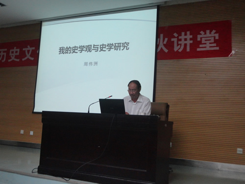 2013年10月7日晚7:00—9:30,由历史文化学院团委学生会《唐潮》编辑部主办的“历史文化学院学生春秋讲堂”第五讲在雁塔校区崇鋈楼学思堂举行。本次讲座由我校西北民族研究中心主任、博士生导师,兼任中国魏晋南北朝史学会会长、中国民族文学会副会长周伟洲教授以“我的史学观与史学研究”为主题展开演讲。学院部分老师及广大博士生、研究生和本科生共240多人前来聆听,本次活动由我院周文乔同学主持。