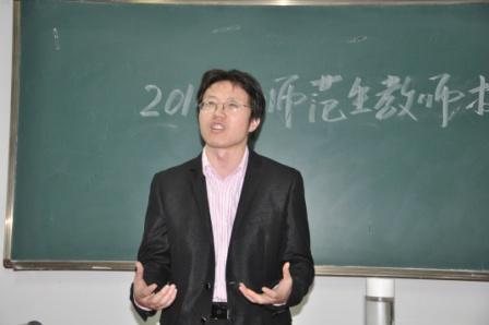 教师代表吕俊涛、石碧球分别就比赛中需要注意的片断教学内容的选择、教学仪态、语言运用、课件设计等问题进行了专业化的详细讲解。他们要求学生要从“合理定位、创设情境、完整教学”三个层面入手,把握好片段教学“局部性、虚拟性、真实性”等特点,授课要有起有伏,引人入胜。