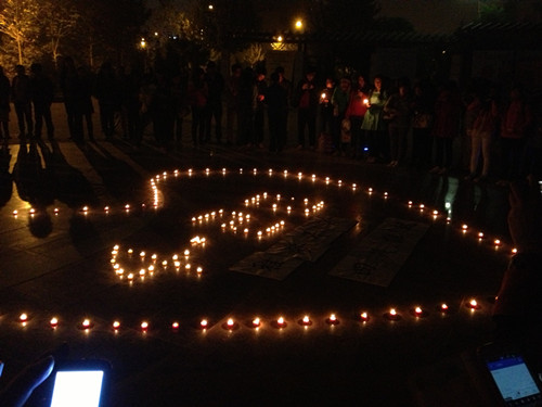 4月21日晚9点20分,旅环院学生会、10级本科生党支部共同在阳光苑门前星座广场举办“雅安不哭 四川雄起”祈福活动。