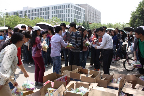 4月15日中午,计算机科学学院党委书记胡波、党委副书记袁冰、团总支书记胡雯洁、2009级辅导员郭康凌和2010级辅导员张冲在田径场前对计算机科学学院参加校运会全体运动员同学进行慰问。 中午的师大,阳光明媚,热浪袭人,却丝毫不影响大家领取慰问品愉悦的心情。在张冲老师简短的开场白之后,党委书记胡波老师作了言简意赅的慰问讲话,他指出,“第一,院里了解到随着校运会的临近,各项目都展开了训练,大家最近都十分辛苦,但还是希望同学们能坚持下去,再接再厉!第二,代表院里对大家进行慰问。第三,希望计算机科学学院运动健儿在校运会上奋力拼搏、再创佳绩!”随后,同学们井然有序地从各位老师手中领取了慰问品,并纷纷表示在今后的学习和生活中,要更积极的为学院和班级尽自己的一份力。 雪中送炭情可贵,亲切慰问暖人心。虽然训练的很辛苦,但我们并不孤单,我们有全院师生的支持和希望;我们有师生同心,共创佳绩的勇气和决心;我们付出努力与汗水,我们收获成功与希望!希望计算机科学学院运动健儿在校运会中赛出风格,赛出水平,突破自我,为院争光! 加油!计算机科学学院!