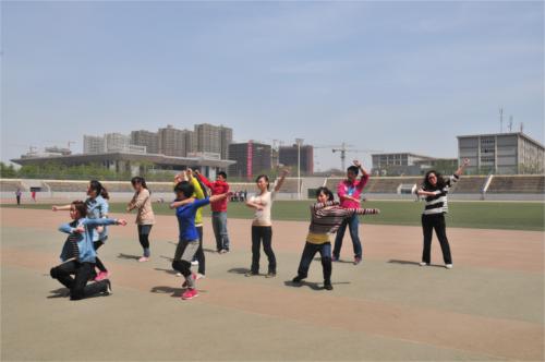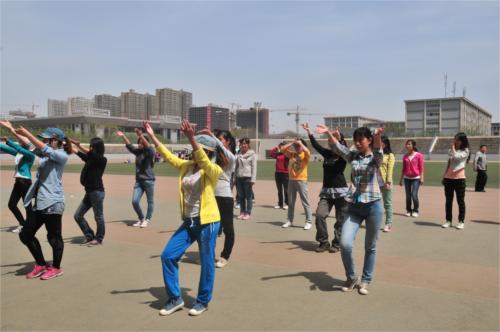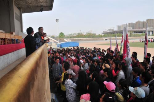 4月12日中午,旅游与环境学院党委书记刘少锋、团委书记郝高建、2010级辅导员朱冰冰,研究生辅导员陈林、助理焦原磊来到训练场,看望正在备战校运动会的全体运动健儿和仪仗方队队员,学院2009级、2010级级共有220多名同学参与到各类比赛项目和开幕式的训练中。