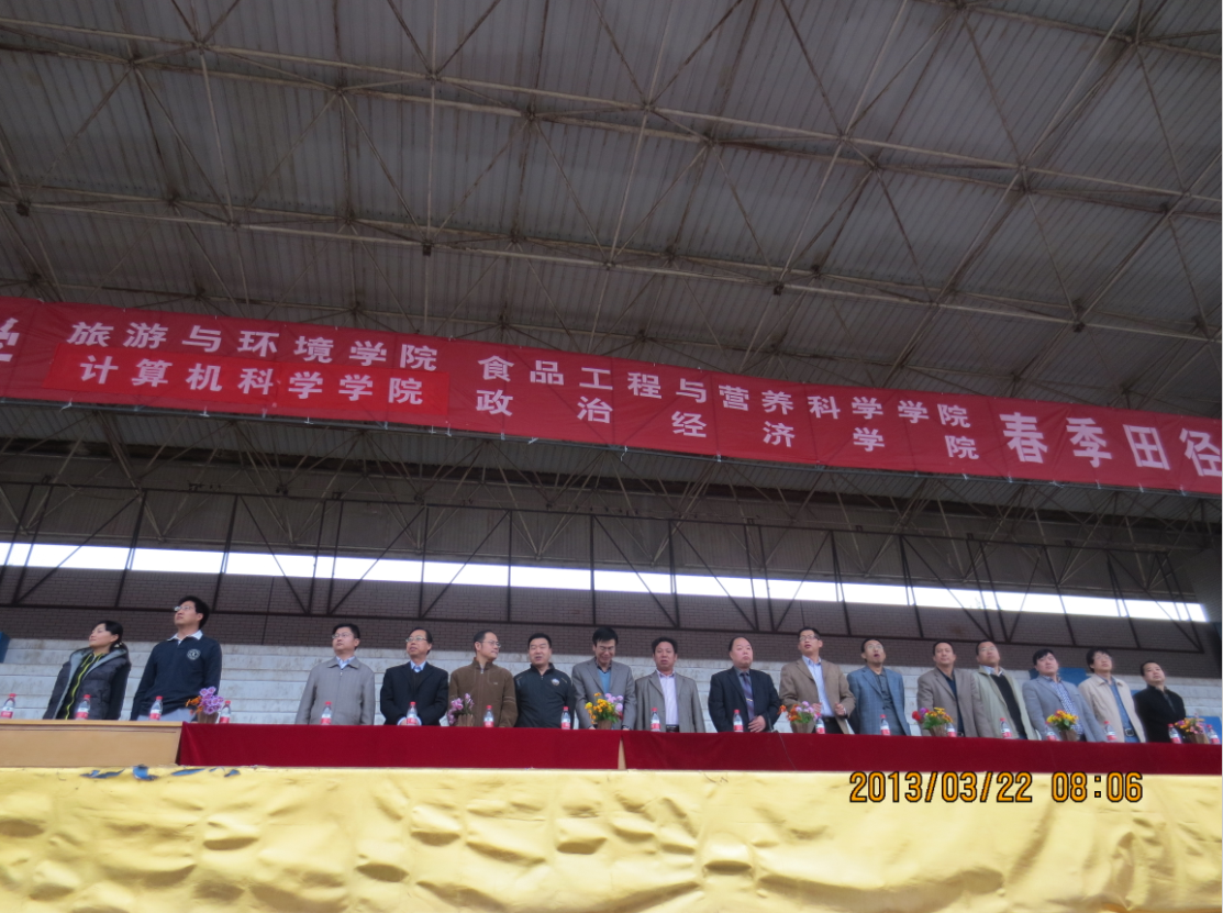 3月22日上午,长安校区田径场,陕西师范大学政治经济学院携手旅游与环境学院、食品工程与营养科学学院、计算机科学学院共同举行2013年春季运动会。各学院党政领导、辅导员、教师代表等出席运动会开闭幕式。 党委学工部(学生处)部(处)长刘建军宣布运动会开始。食品工程与营养科学学院党总支书记田颖、旅游与环境学院党委书记刘少锋分别在运动会开、闭幕式上致辞,田颖在讲话中指出,同学们要通过积极参加运动,提高健康素质,砥砺意志品质,培养高尚的情操;在比赛中要赛出风格、赛出水平、赛出友谊。刘少锋对本次春季运动会的顺利召开做出高度评价,并希望全体师生心怀梦想,保持本届运动会展示出的良好精神风貌,团结协作、携手共进,以饱满的热情投入到学习、工作和生活中去,不断创造学院、学校更灿烂的明天。 本次运动会共有357名运动会参加了田径比赛和趣味比赛两部分多个项目的角逐。竞赛别出心裁地启用了“学院与学院协同组织,分开评选表彰”的竞赛制度,既能激发同学们的参赛热情,又全面考虑到各个学院的实际情况。赛场上,志愿者、裁判、播音员等工作人员坚守岗位,运动员积极参赛,奋力拼搏,使得比赛的各个项目都得以顺利进行。赛场外,各班拉拉队组织有序,并通过宣传板、横幅等为班级加油助威。整场运动会秩序与欢乐并存。政治经济学院在本次运动会中取得了喜人成绩,政经一队、政经二队、政经五队团体总分分列前三甲。