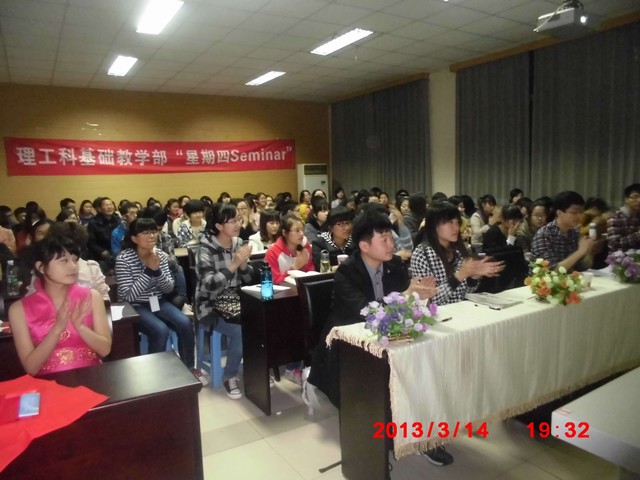 3月14日晚7点,理科部学术科技部第五十七期“星期四seminar”在雁塔校区教学三楼学术报告厅成功举办。本期活动主题是“关注‘星星的孩子’—科学探秘自闭症”,由11级心理学专业的蔡诗瑶、郭帅、陈宛月同学担任主讲,高扬老师应邀出席了本次活动。