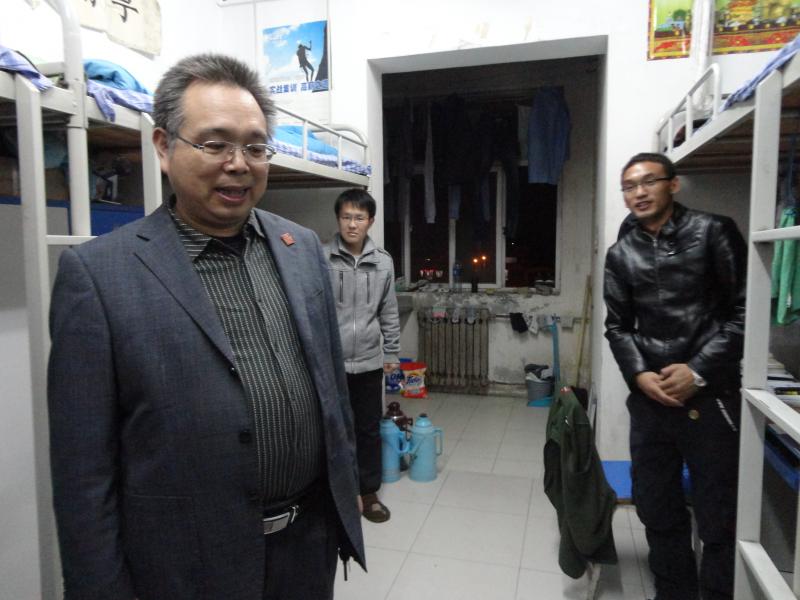走访过程中,党委副书记蒋毓新、研究生辅导员王健亲切询问了宿舍供暖情况、电梯使用情况,并且十分关切地了解了同学们的课外学习情况。其间,党委副书记蒋毓新表扬了研究生宿舍的干净整洁,同时也希望本科生男生宿舍继续保持干净整洁的宿舍卫生。
