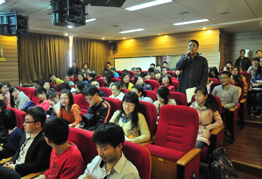 首先,副院长赵振斌就苏珊·威尔考特的研究领域、方向、研究成果做了简短的介绍。之后,苏珊·威尔考特教授通过自己的亲身经历,用英语详细的给我们介绍了:从南海到里海——复苏中的欧亚大陆廊道的情况,重点对尼泊尔、不丹及锡金等3个国家和地区的地理概况、人文情况作了介绍。讲座中,同学们听得非常认真,仔细记录着报告的内容。同学们就苏珊教授的讲座内容提出了很多问题,教授一一细心解答,语言幽默诙谐,剖析深刻,获得同学们的阵阵掌声。最后,副院长赵振斌总结了讲座的基本内容以及重要意义。